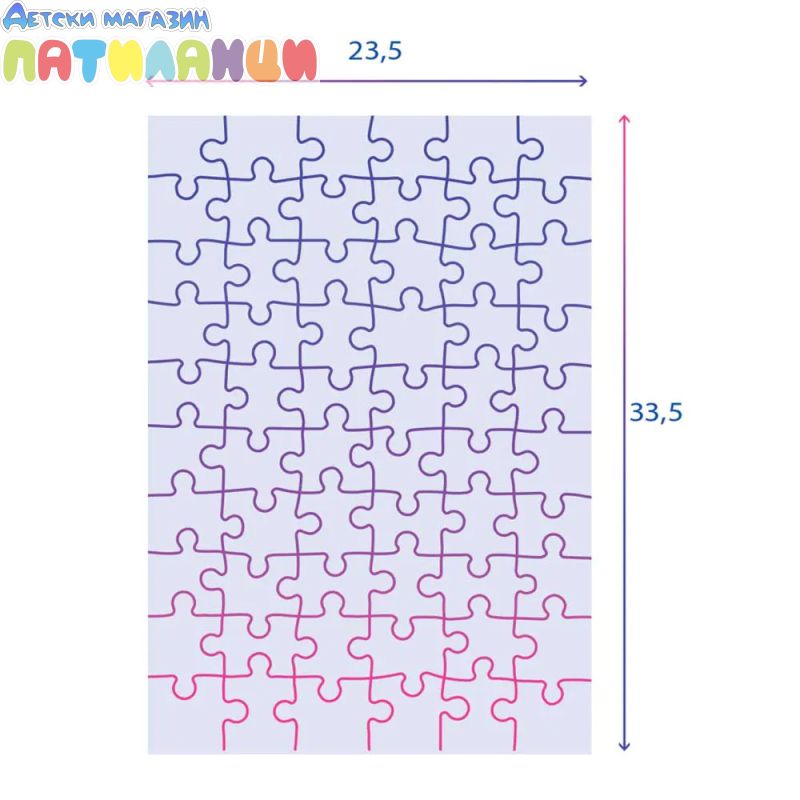 Размери на сглобения пъзел: 33.5 х 23.5 см.