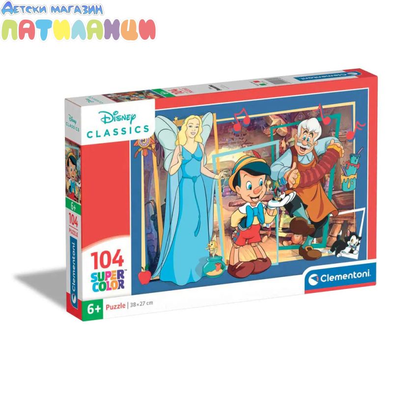 Представяме ви детски пъзел Pinocchio 104 части CLEMENTONI 25756 – чудесен избор за деца, които обичат вълшебни истории и забавни предизвикателства.