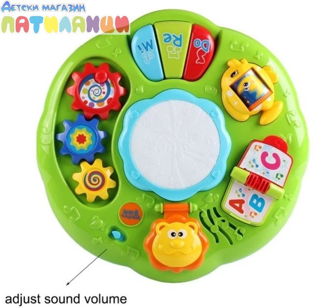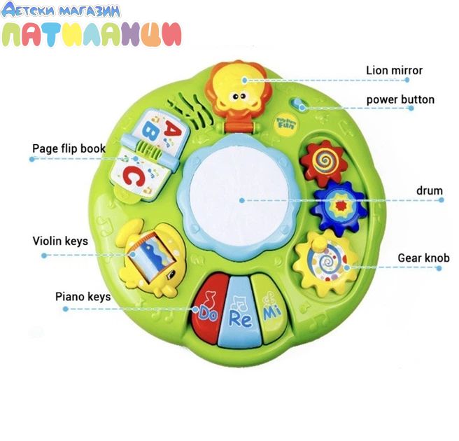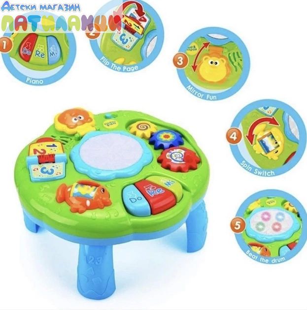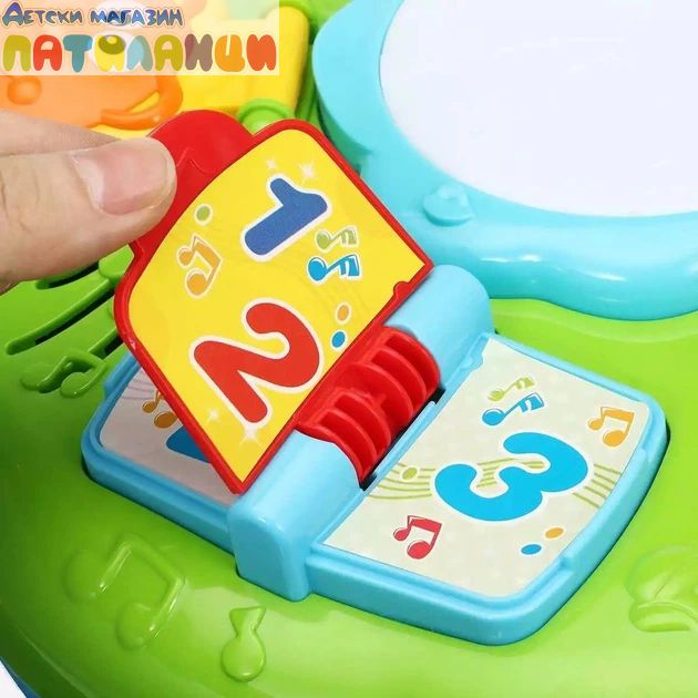 Интерактивна музикална масичка е забавна и образователна играчка, създадена да развива сетивата и уменията на най-малките деца чрез игра и музика.