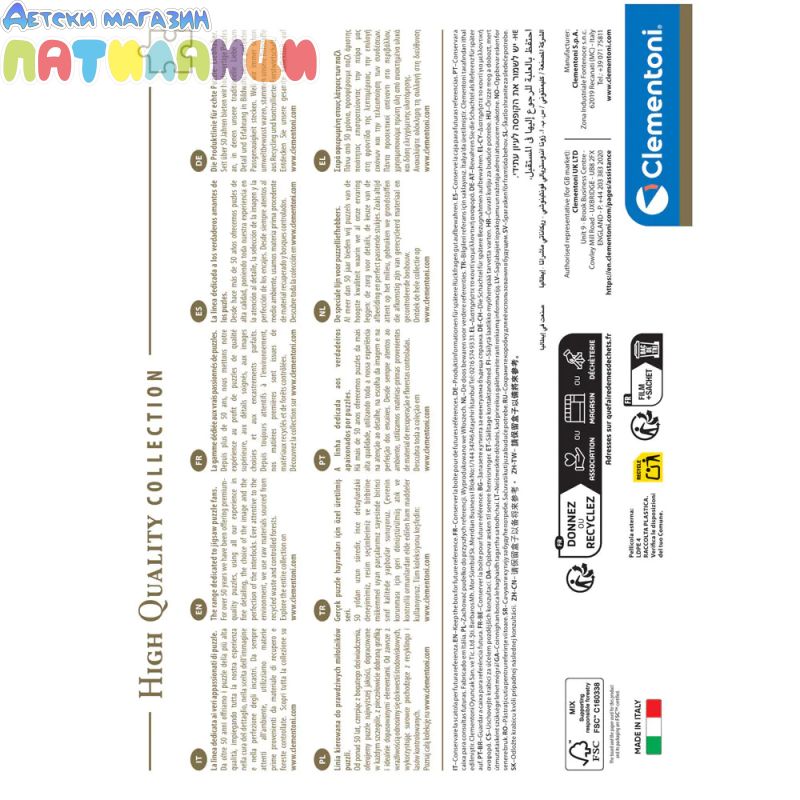 Пъзелът се състои от 1000 части, изработени от висококачествен и устойчив картон с прецизно изрязване за точно напасване. Това гарантира приятно и предизвикателно подреждане, което носи удовлетворение след завършване.