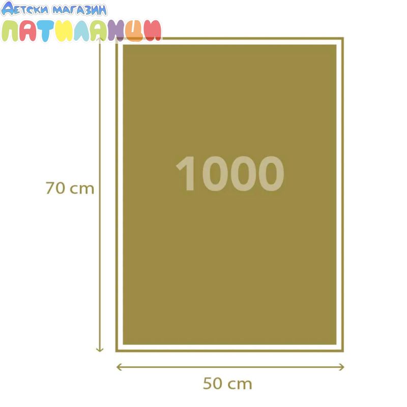 Пъзелът съдържа 1000 части, изработени от висококачествен и устойчив картон с прецизно изрязване за перфектно напасване. Това осигурява приятно и удовлетворяващо подреждане, подходящо както за по-големи деца, така и за възрастни.
