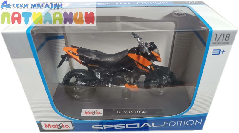 Металният модел KTM 690 Duke MAISTO 1:18 е впечатляваща умалена реплика на един от най-популярните градски мотори. Със своя агресивен дизайн и спортен дух, този модел е чудесен избор за колекционери и фенове на моторите.
