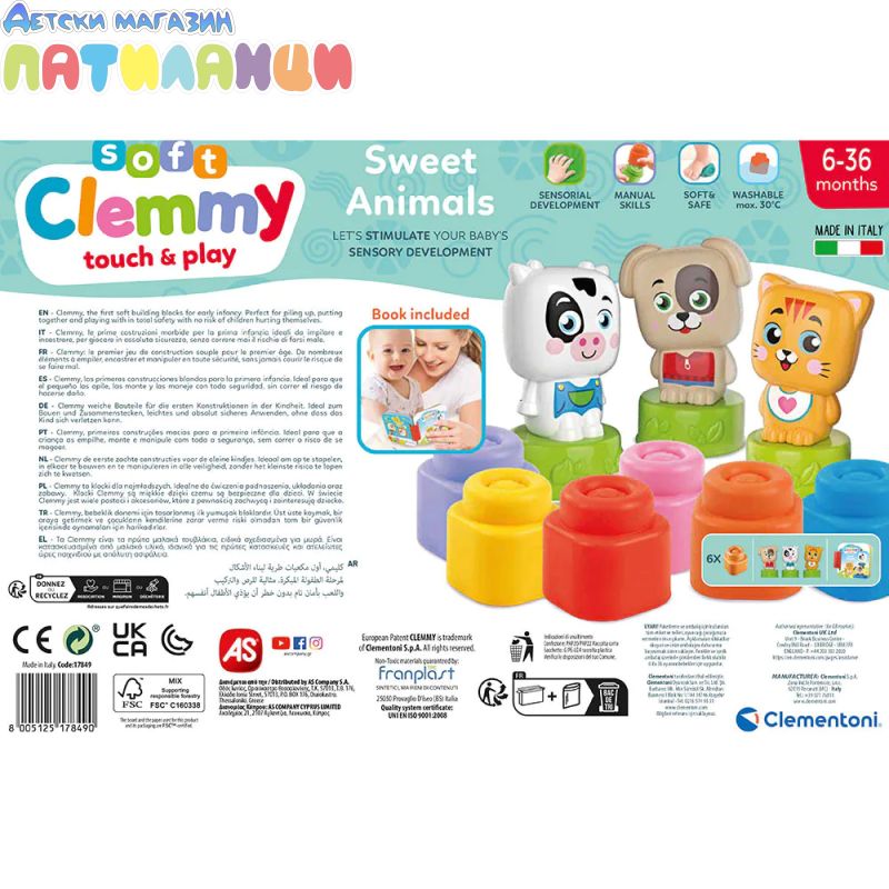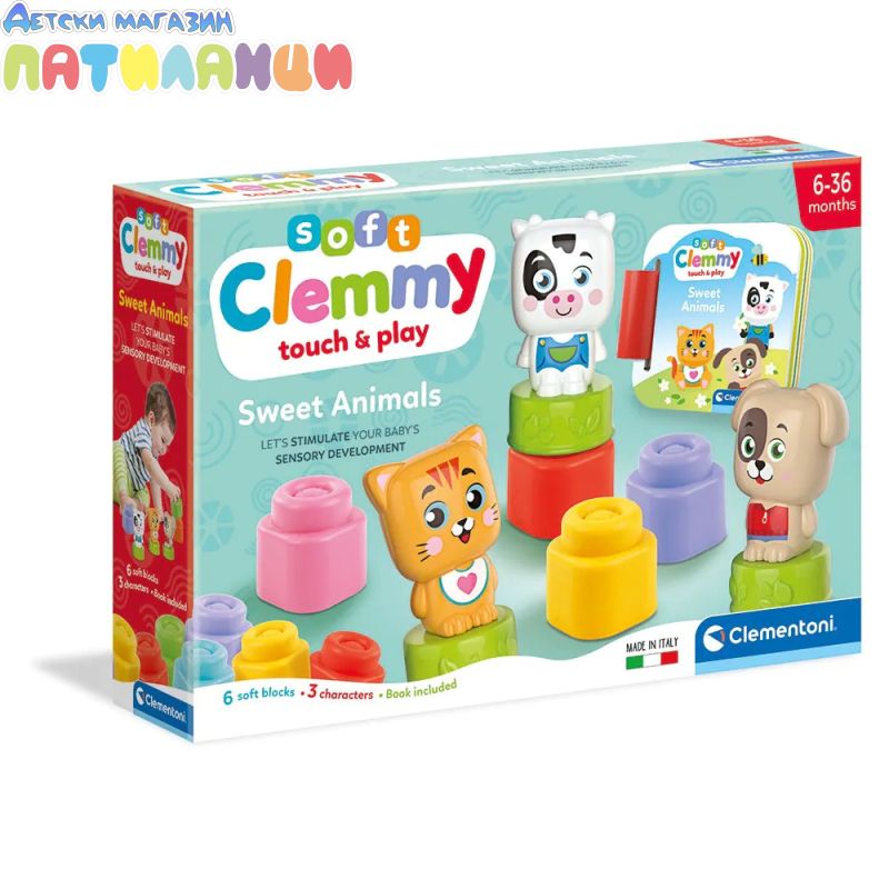 Открийте цветния и безопасен свят на Clementoni Soft Clemmy – Животни – забавен образователен комплект, създаден специално за най-малките деца.