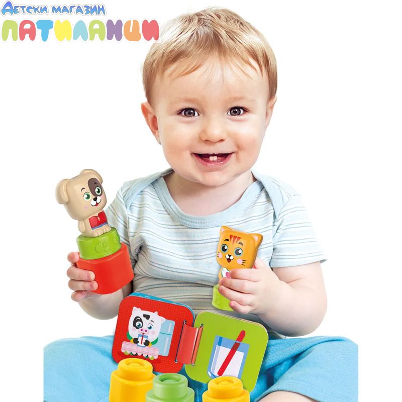 С помощта на меките фигурки на животни и блокчета, детето може да играе, да измисля истории и да развива въображението си по напълно безопасен начин. Меките елементи са лесни за хващане и идеални за малки ръчички.