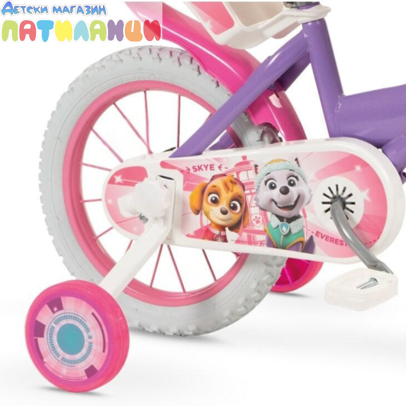 Toimsa 14" Paw Patrul е изпълнен в ярки цветни игри с изображения на любими герои на вашето дете. Колелото е от здрава метална рамка, в приятен лилав цвят и стикери с любимите кученца