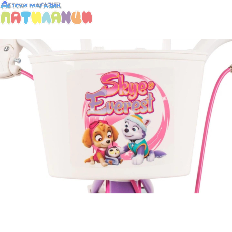 Toimsa 12" Paw Patrul е изпълнен в ярки цветни игри с изображения на любими герои на вашето дете. Колелото е от здрава метална рамка, в приятен лилав цвят и стикери с любимите кученца