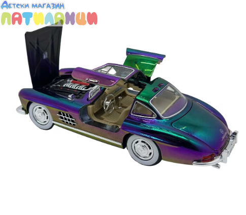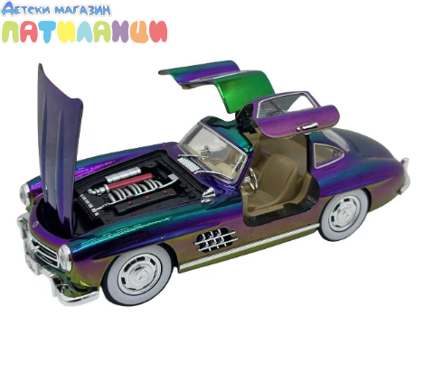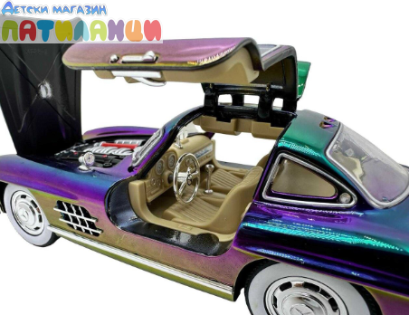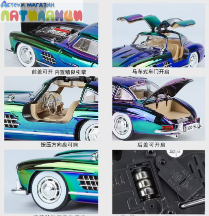 Отваряеми врати (при повечето версии) за по-реалистично изживяване Детайлно изработен интериор – седалки, табло и волан в умален мащаб Метална конструкция с пластмасови елементи за по-голяма здравина и реализъм Свободно движещи се колела за игра и демонстрация Реалистичен външен дизайн, пресъздаващ класическия спортен автомобил Подходящ както за игра, така и за колекционерска експозиция