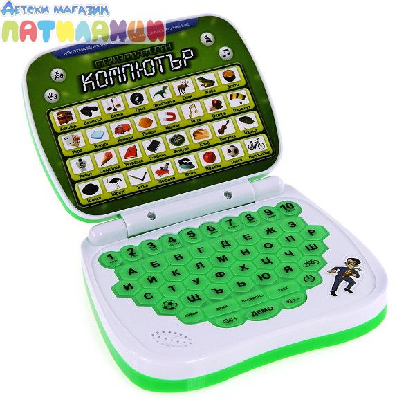Използвайте бутона за включване, за да включите или изключите лаптопа. След включване играчката преминава в режим "Букви". Ако 60 секунди не се натисне никой от бутоните на компютъра, той се изключва автоматично.