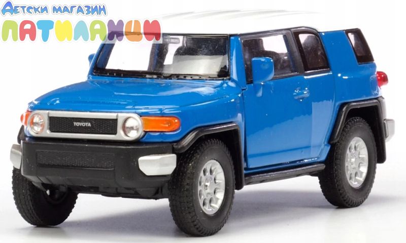 Металната кола Toyota FJ Cruiser от Welly е компактен и детайлен модел в мащаб 1:34, вдъхновен от популярния офроуд автомобил на Toyota. Моделът впечатлява със здрав дизайн, реалистични пропорции и внимание към детайла.