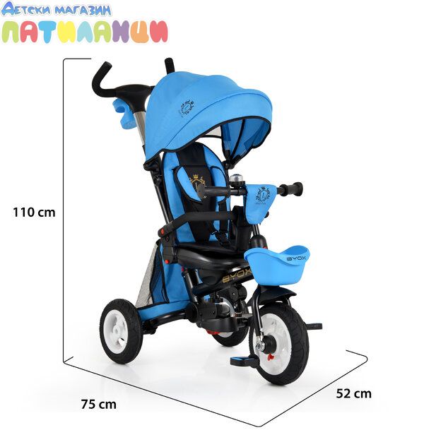Детската сгъваема триколка Byox Flexy Lux синя е отличен избор за ежедневни разходки и първи приключения на открито.
