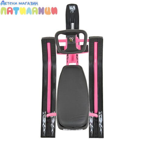 Невероятният помощник за зимно развлечение е върху две стабилни ски, които не позволяват преобръщане. Ските са уребрени за по-лесно завиване.