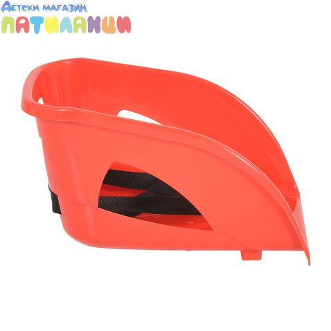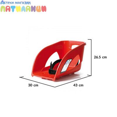 Седалката е оборудвана с колани и е подходяща за по-малки деца.