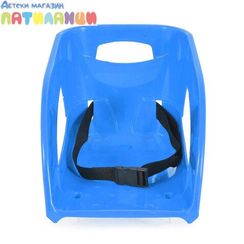 Седалката е оборудвана с колани и е подходяща за по-малки деца.